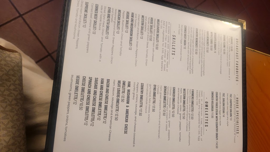 My wife and I love this place. I get a Denver omlette with cheese and she gets Eggs Benedicts. Excellent. Waitress are very attentive. Food served quickly. This is are go to breakfast place.