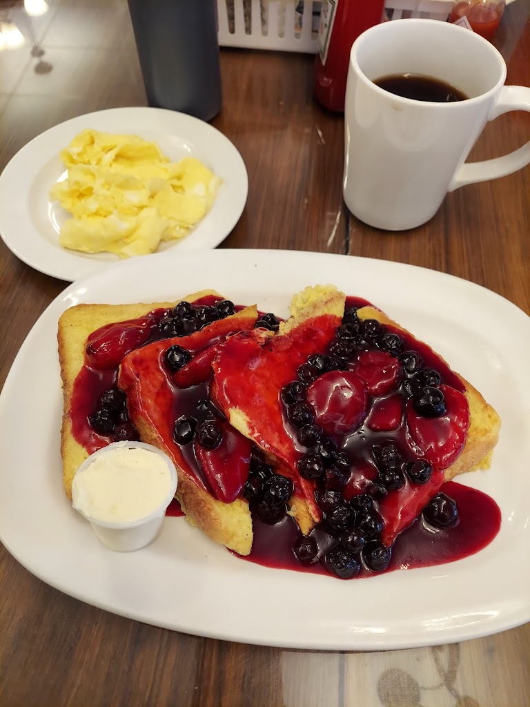Food was great only the picture on the menu missed leads. I ordered the French Toast with the fruit, picture shows fresh fruit and I got like pie fillings. But it was good.