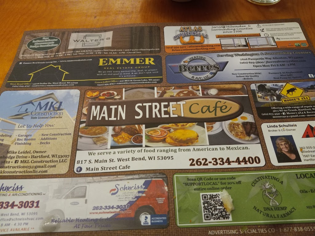 As all great diners are, Main Street Cafe is nestled in a seedy-looking plaza next to businesses that could easily be money-laundering fronts for organized crime. Inside, it is homey, cozy, and full of regulars who no longer have to see a menu or even order because the waitresses all know exactly what they want. This is exactly what you want from a good diner: simple, friendly, on the verge of questionable.