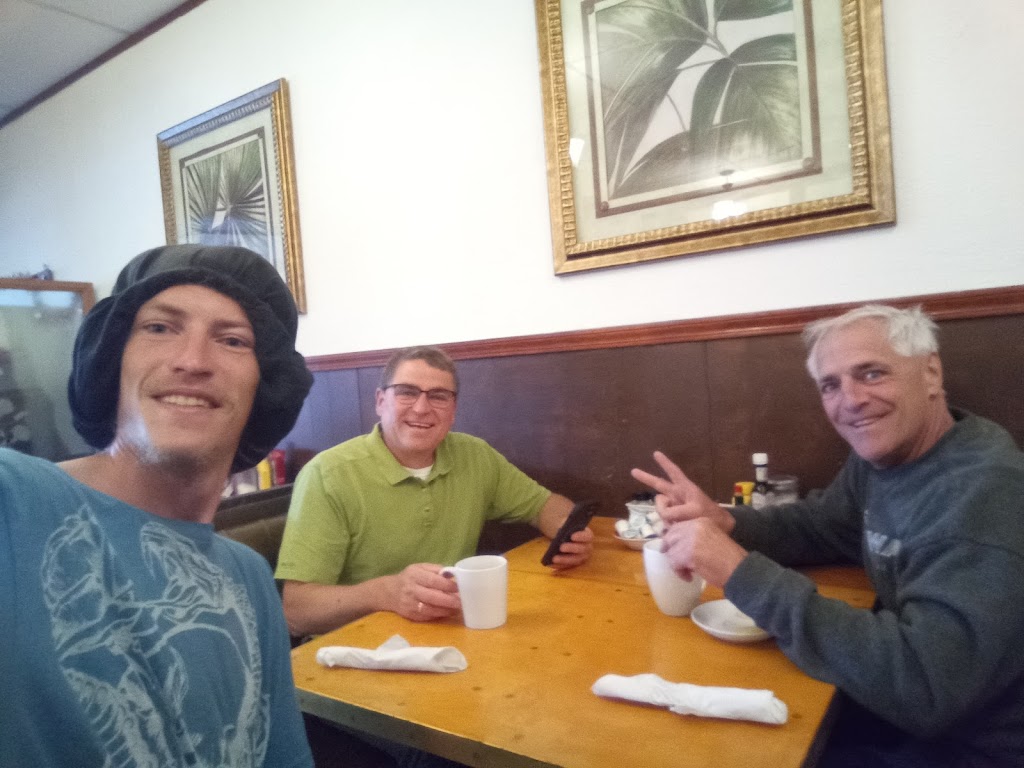 Waitress was friendly the food was good and it was warm inside. And good conversation.