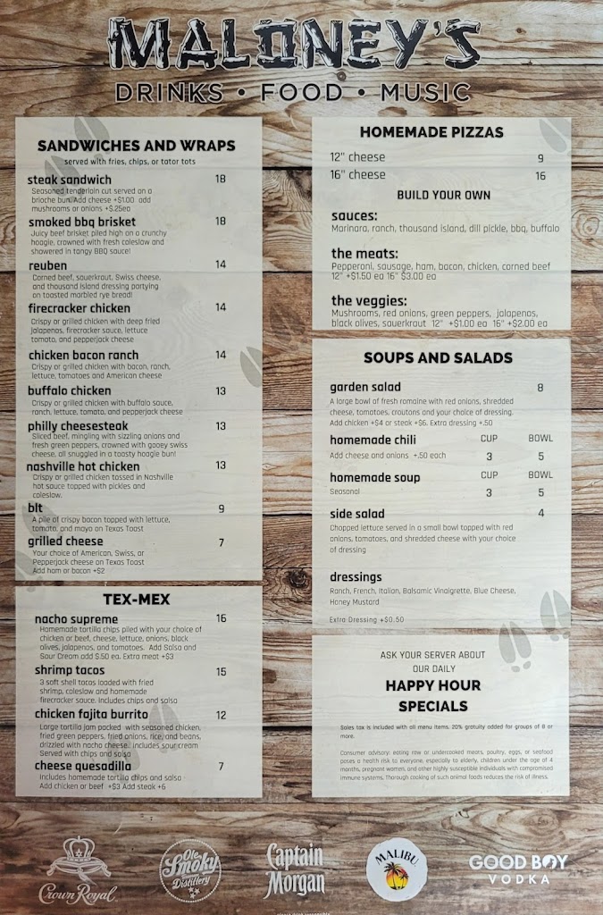 Maloney's is a destination bar and grill! Every week there is LIVE music too!