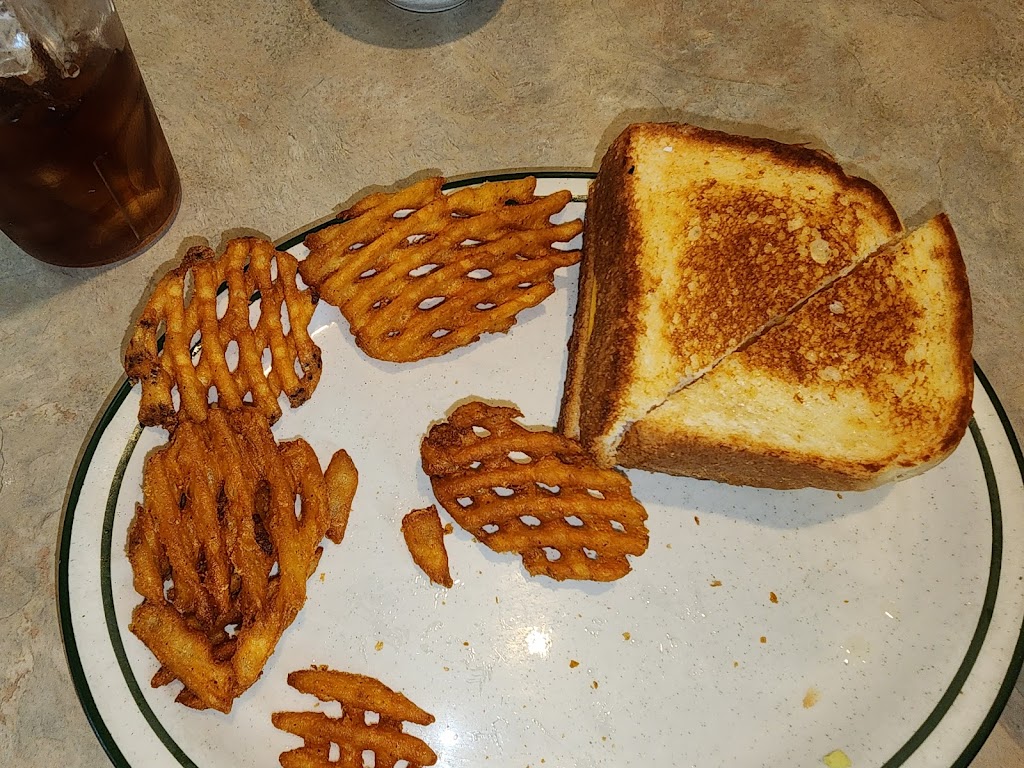Stopped here on our way home from I road trip. My wife had a chicken sandwich and sweet potato fries. I had the Mexican skillet and it came with biskets and gravy. It could have fed two people. Service was great and the food was fantastic. We will be back!