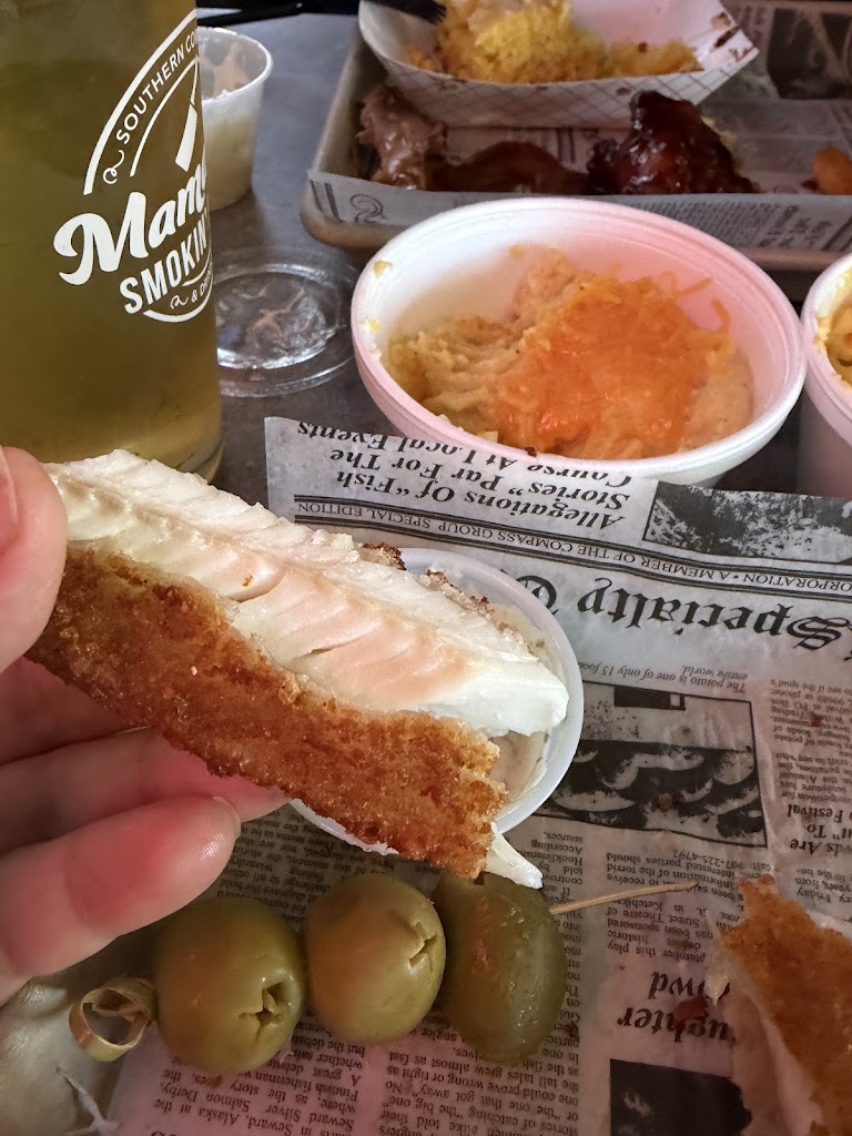 THIS FISH IS RIDICULOUS!! I think my life might be slightly different from now on; the fish has changed me. Crispy, thin but delicious breading - killer slaw, onion rings I will surely dream of- HAND CUT FRIES!! - and a FABULOUS Bloody Mary to kick the whole thing off (thank ya for the spice!) — all around A TRIUMPH! Thank you Mama T’s!!
