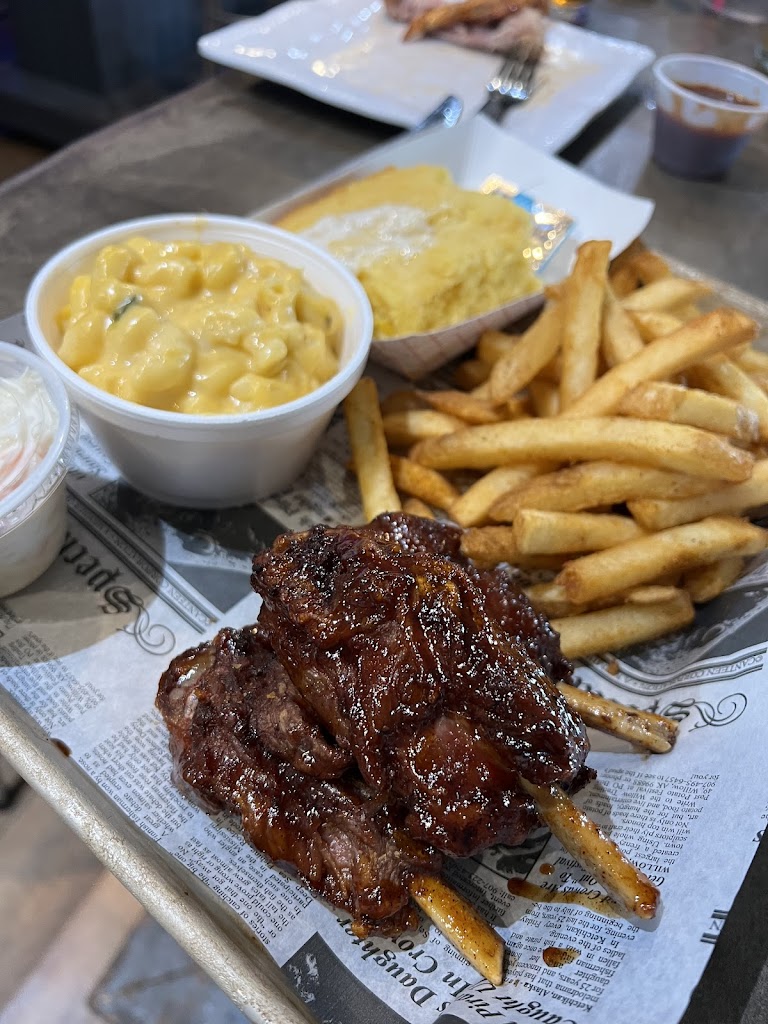 10 out of 10 smoked wings, mac and cheese with fries!!