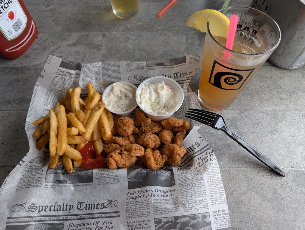 $50 for chickens tenders and a shrimp meal. Way overpriced for bar food. Nothing exciting, just bar food. The chicken tenders were very dry. They serve crappy Pepsi on tap, but do have Coke products in cans, which is why they for 3 stars instead of 2. I won't be back.