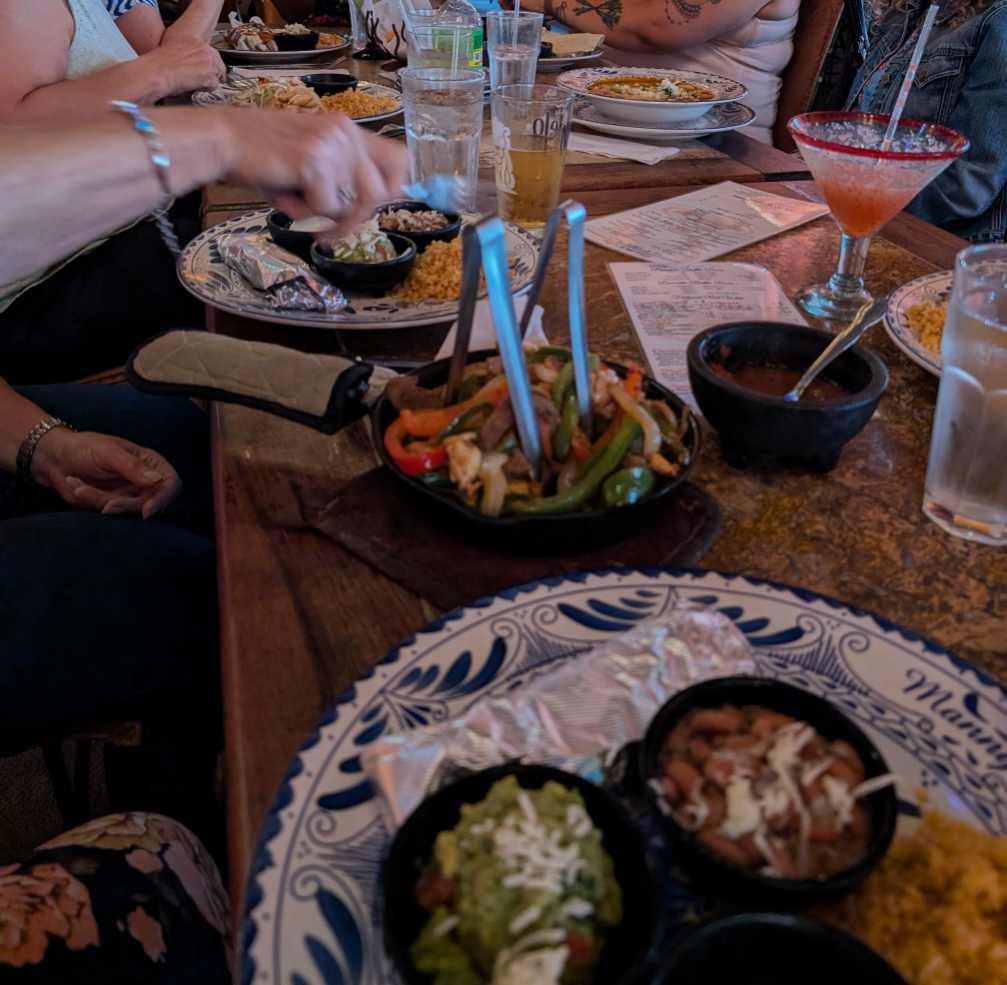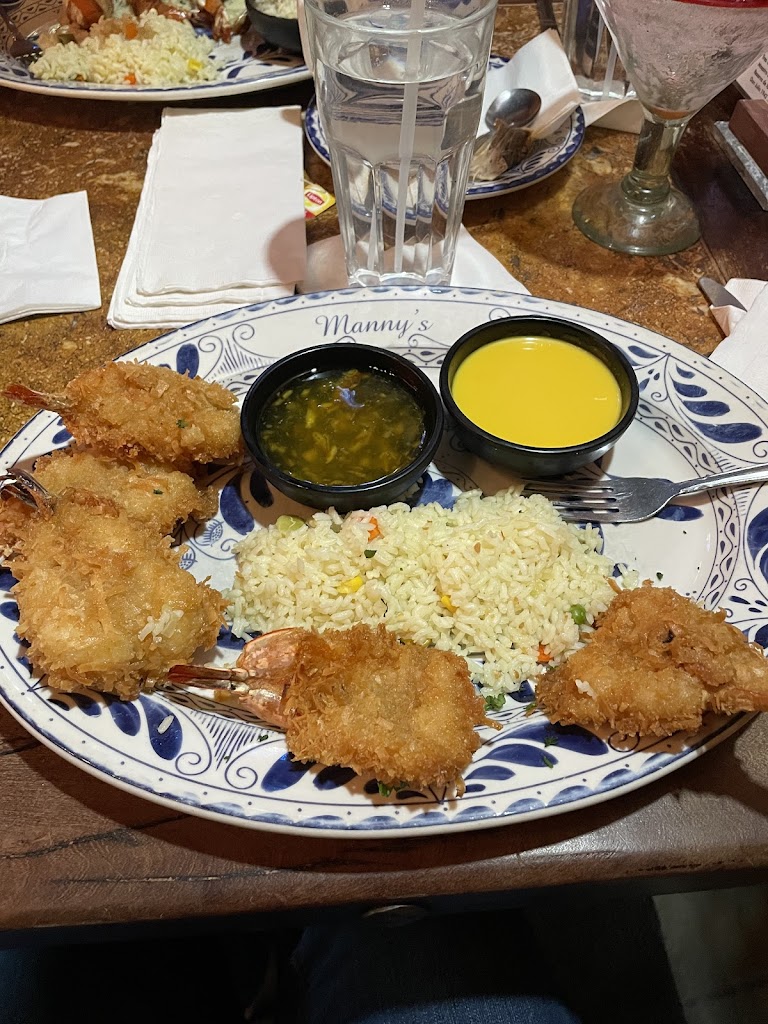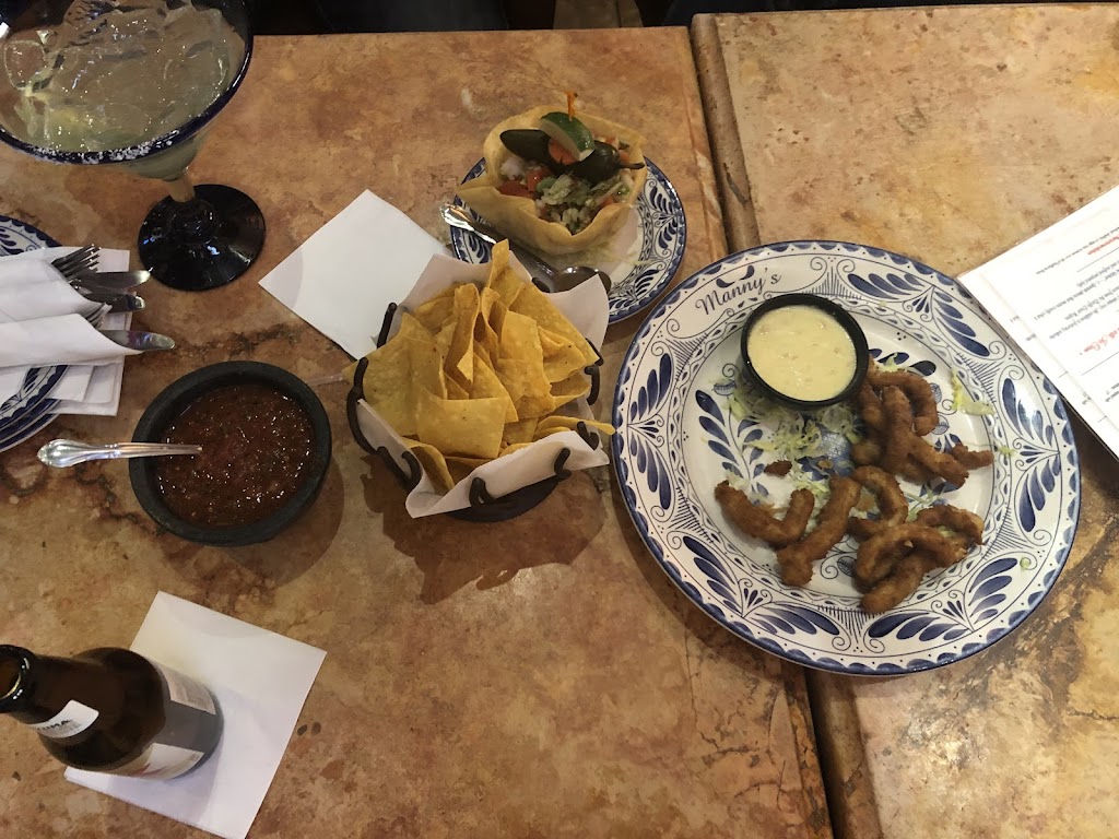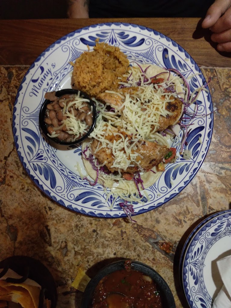 The food was very good. Every restaurant I go to, I always have to try the Margaritas. Manny's is good but 2nd to Texas Roadhouse. Our server was super great too. She was super nice and very with keeping my daughter smiling.