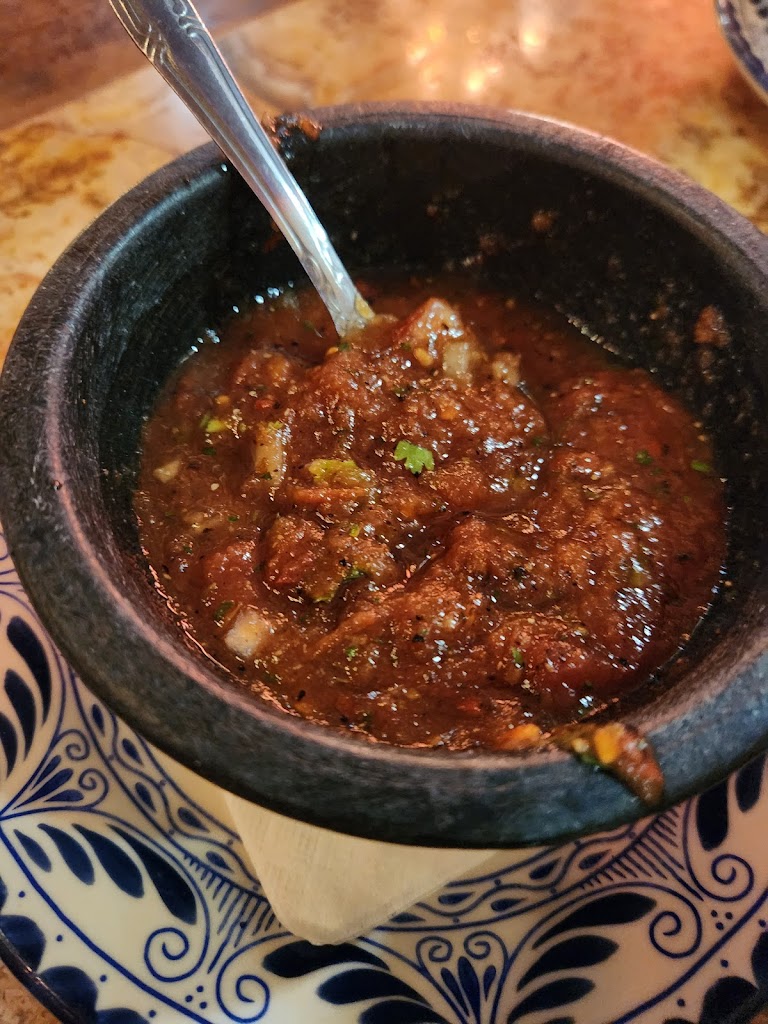 Place is beautiful, chips and salsa were meh. Salsa tasted like spaghetti sauce to me. I had the chicken fajitas and they were very disappointing. Too much black pepper. Rice was dry and lacked flavor and the beans were not very good either. Our waitress was very nice and attentive. Over priced food in my opinion for what you get. I just wasn’t a fan.