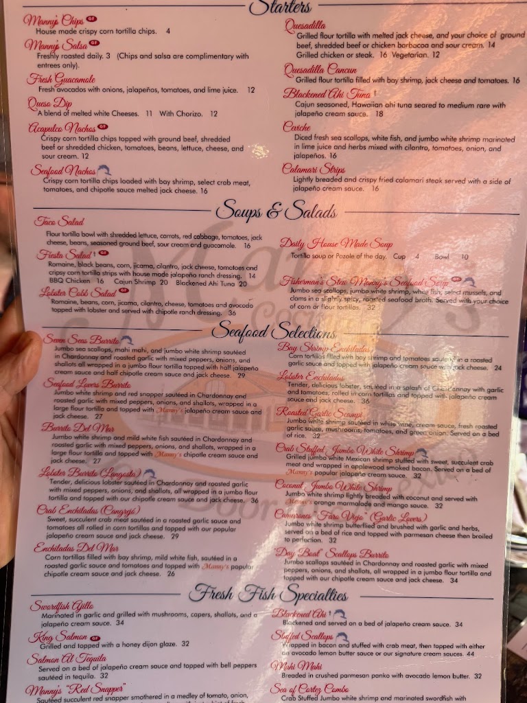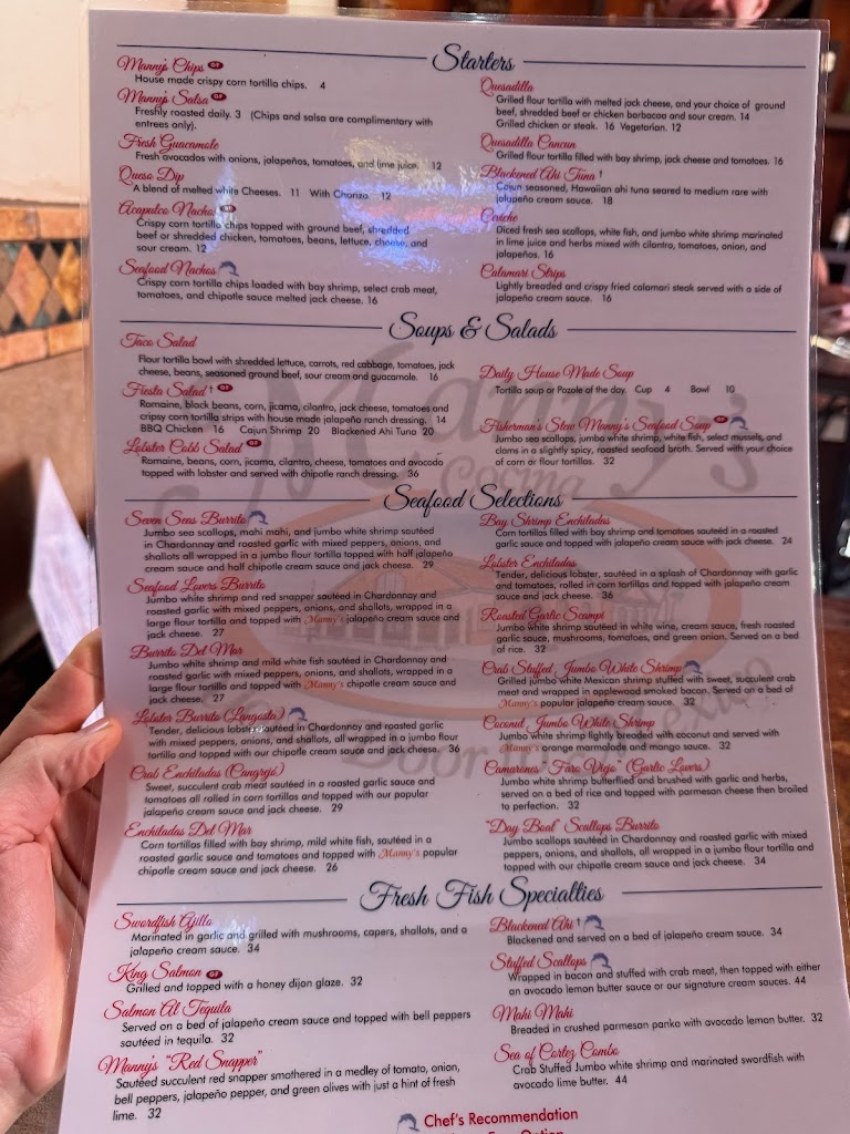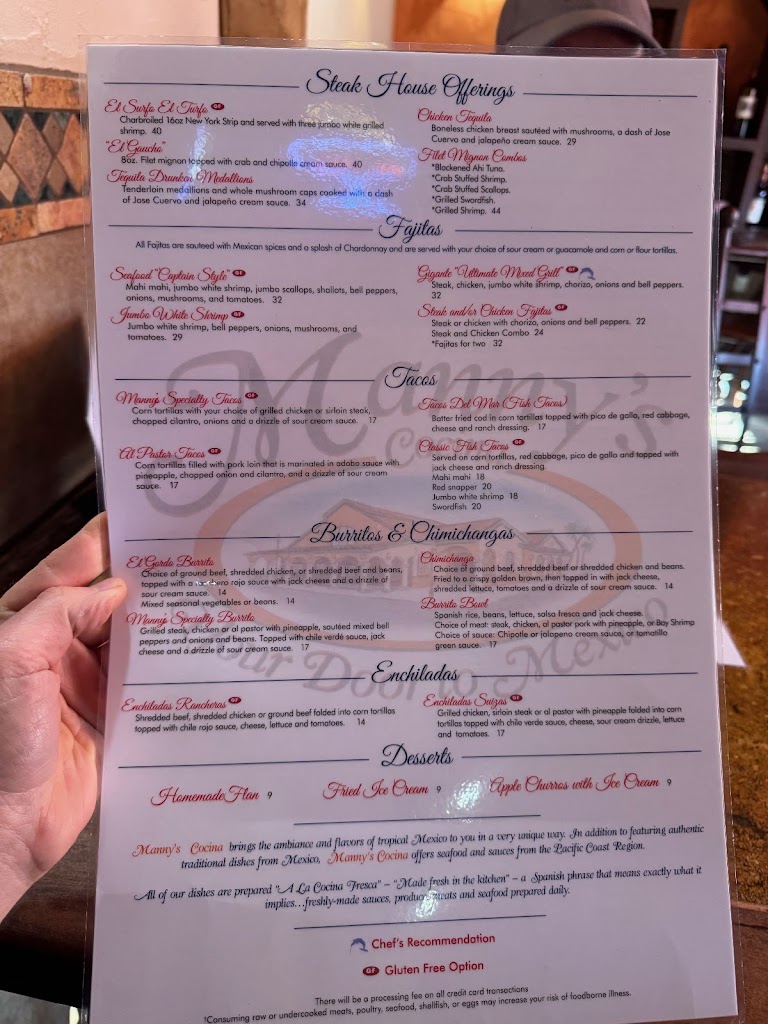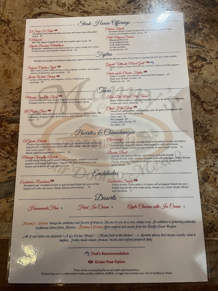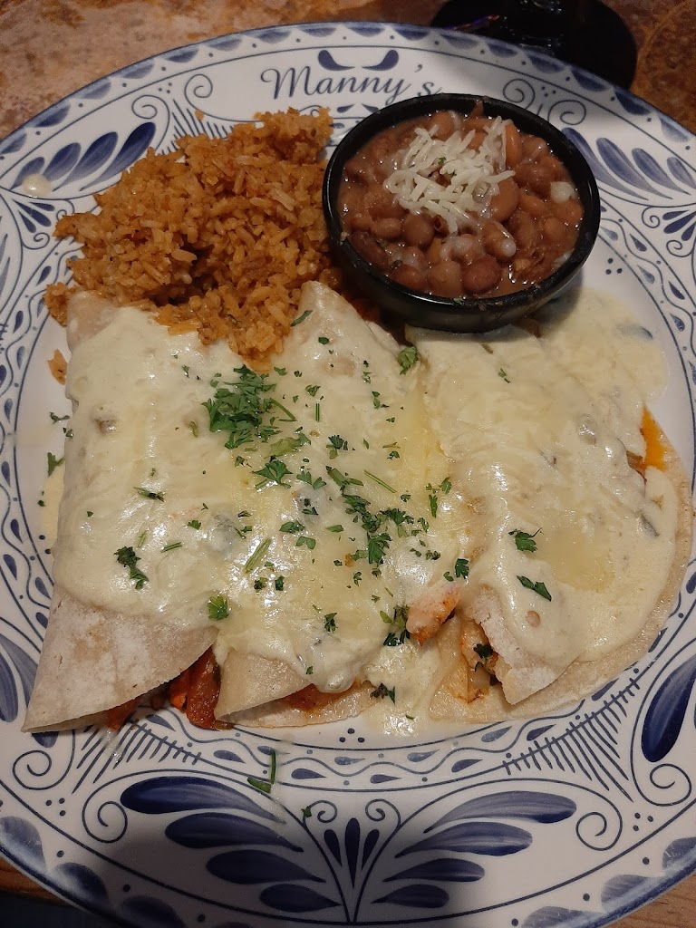 Very excellent Mexican cuisine. I ordered the Manny’s Burrito Special and my husband had the Ultimate Fajitas. Both were very fresh and flavorful. Plus it’s a lovely ambiance. Great service, too!