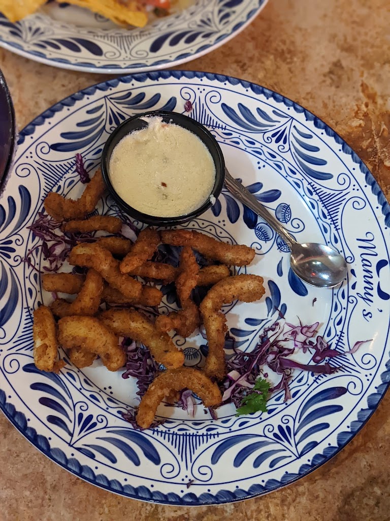 We ordered several different entrees, including the special, Calamari Calafia (squid steak). Everything came out in short order, was hot, well seasoned and generous portions. Everyone was raving about the quality. There was a Burrito Bowl, Al Pastor Burrito, Al Pastor Tacos. My Calamari Calafia was outstanding. It came with a Jalapeno Cream Sauce that mildly spicy and an excellent addition to the squid steaks. I love calamari and this was probably the best that I have had. (Friend calamari can be chewy, and this was not).
