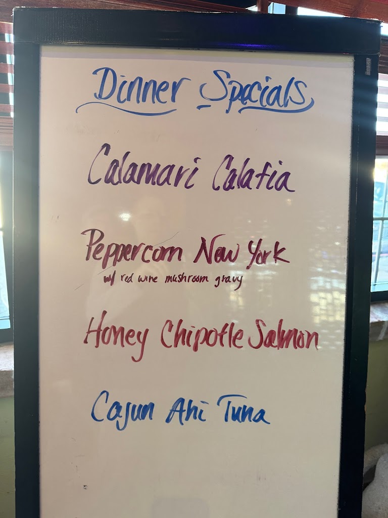 Great atmosphere and service. Waitress was kind, smiled and pleasant to talk with. Food was good.