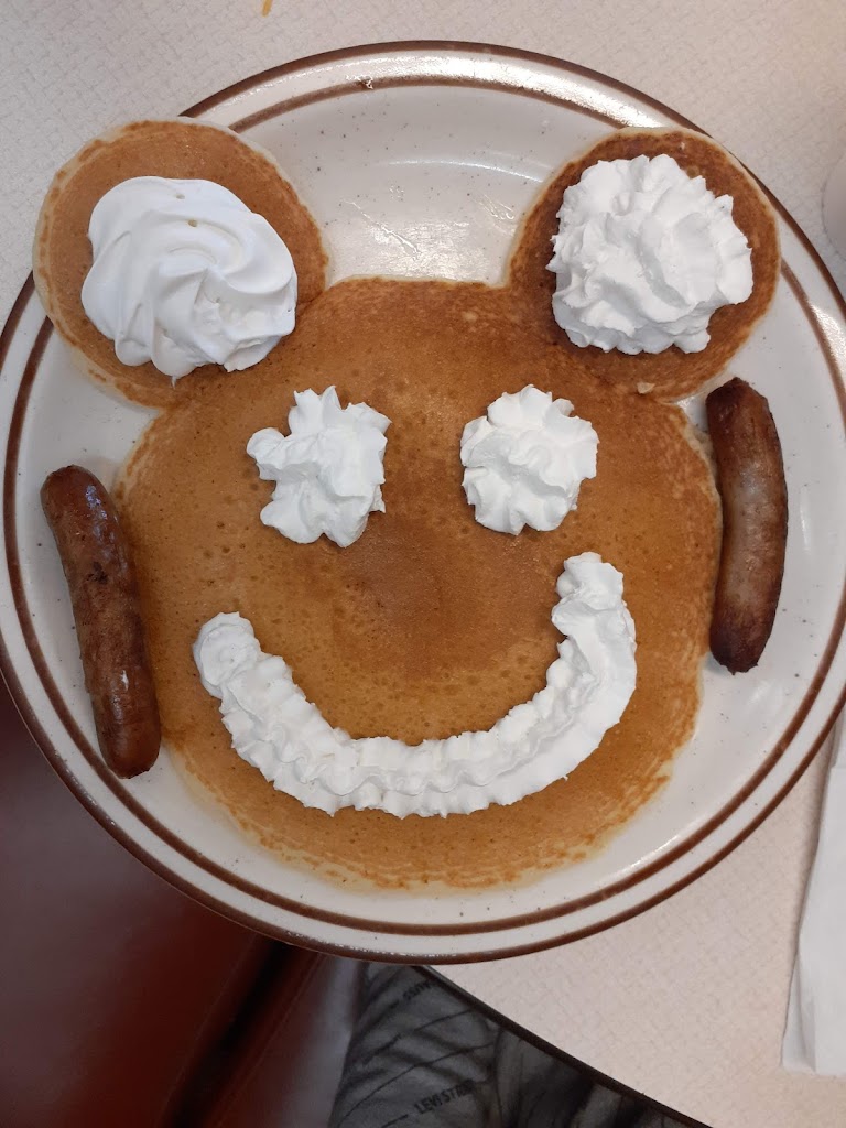Got seated and drinks right away. Looked at the menu, remembered there's a kids menu. Grandson LOVES Mickey Mouse and other Grandma said there was a Mickey Mouse pancake. The look on our Grandsons face was soooo precious and beautiful!