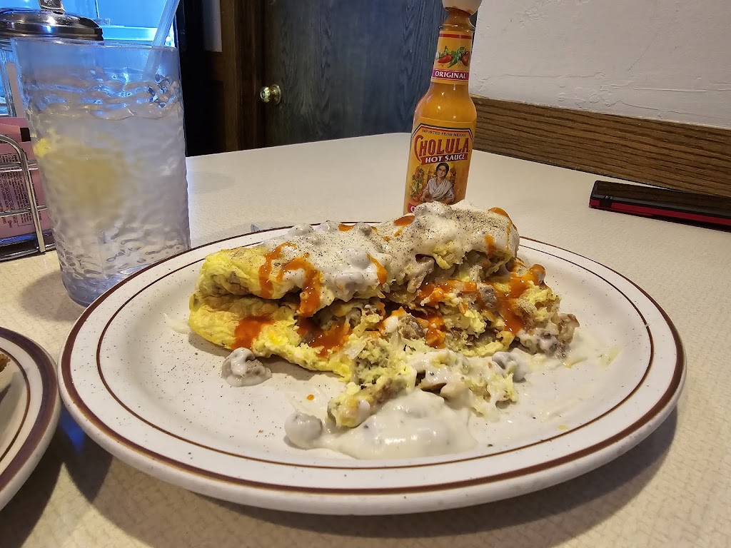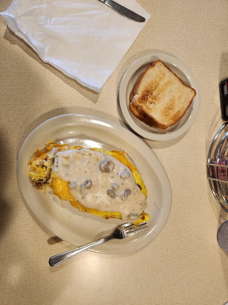 We stopped for breakfast on a 6 hour drive back home after camping for a week.