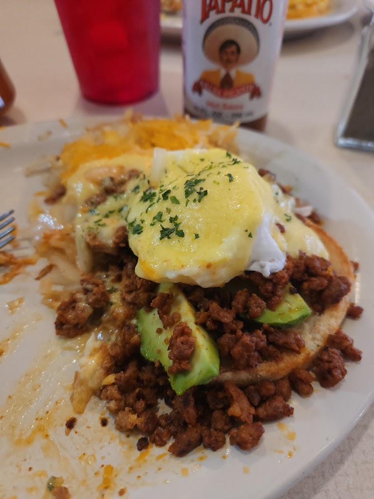 Very very good breakfast. The hash browns, with onions and cheese added on top were excellent!! M daughter had the eggs Benedict with bacon and avocado. I had the gyro omelet.