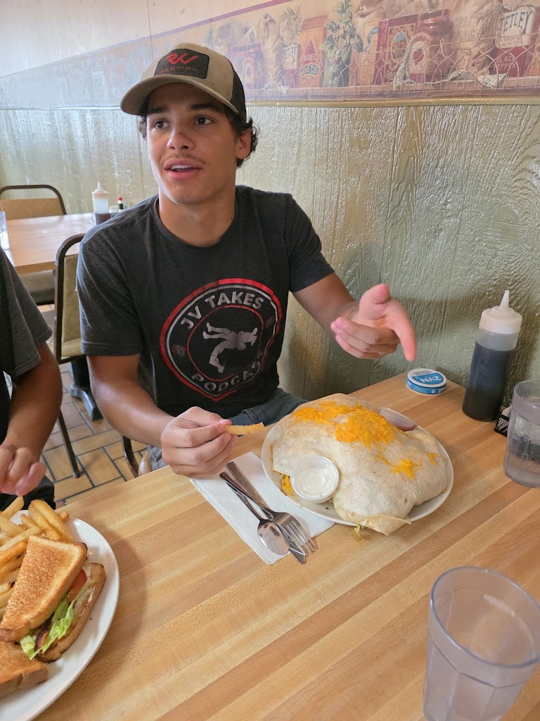 We got the breakfast burrito challenge. We did not get the t-shirt. Excellent food, amazing service. The staff and the other guests were very friendly. Fun place to eat. My whole crew left very full