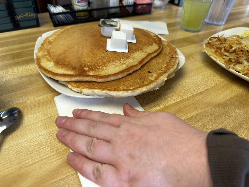 I truly don’t understand how this place has so many positive reviews. The waitress slide menus on our table and walked away without saying anything. There were only 5 other tables but it still took 45 minutes for 2 pancakes and 1 omelette. The pancakes were flavorless and not fully cooked. The only positive thing about it was the cinnamon roll, but even that took 30 minutes. It wasn’t even warmed up, so it took half an hour to put it on a plate and pour on some frosting?? We watched people who came in after us get their food before us. After reading other reviews, this seems like a common occurrence. The waitress was also watching as my partner was signing the receipt almost to see if he was going to leave a tip. I genuinely don’t um how this place is still in business.