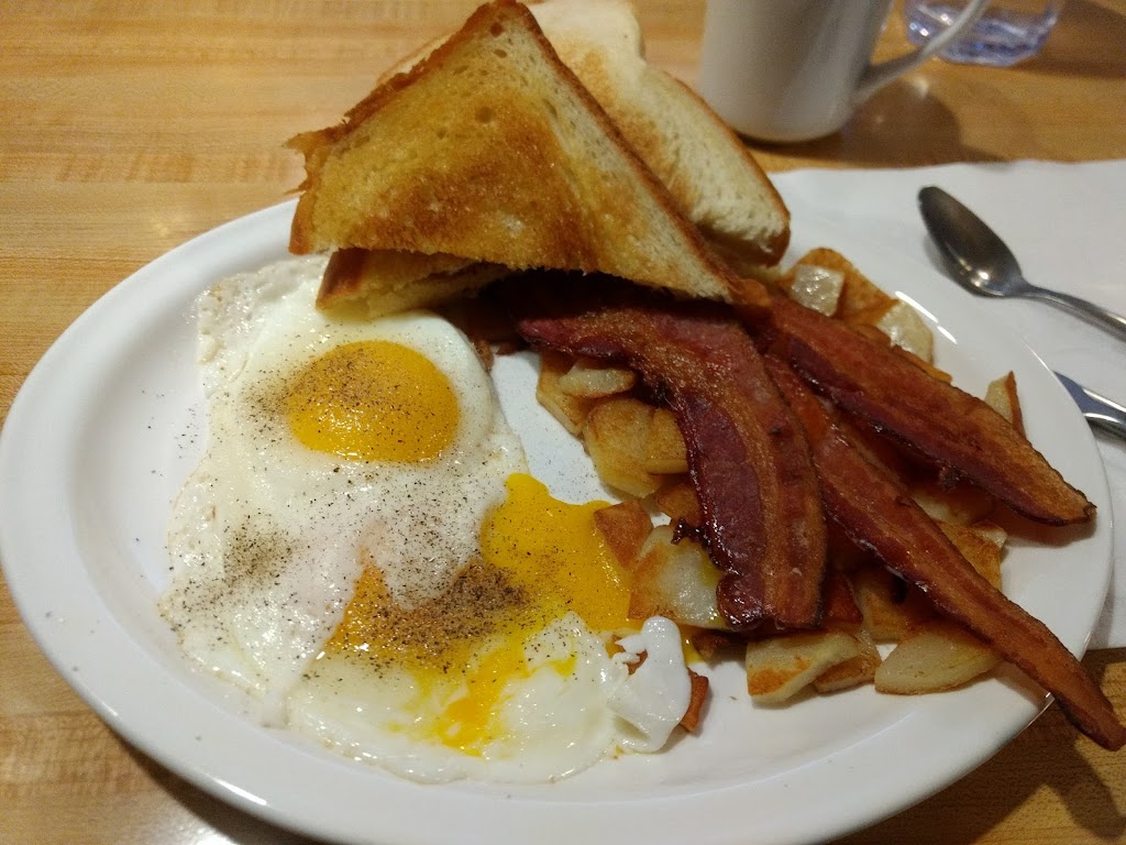 Happened across this cozy cafe and was treated to an excellent breakfast. Lots of breakfast choices. The homemade bread was well worth the extra 50 cents. 3 strips of crispy bacon, wonderful American fries. Nice eggs and coffee and fair price. Service was very good too. I'll stop again!
