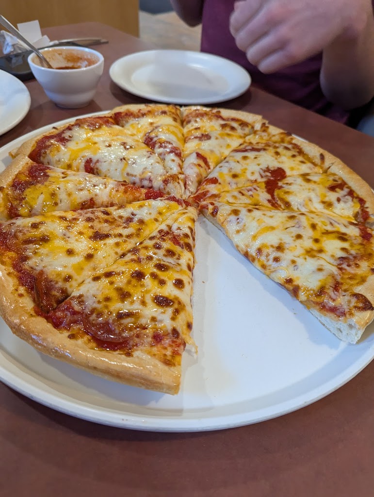 I tried to take down the 18" pizza on my own. I got over half down but had to tap out. The sauce makes this pizza so good. The garlic cheese bread is also spectacular. Can't wait to go back. Gonna try the thin crust next time.