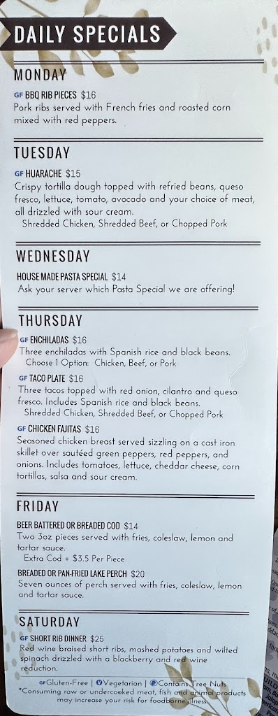 It was a great experience. Staff were very friendly and the food was excellent. We had the fish fry, and it was delicious