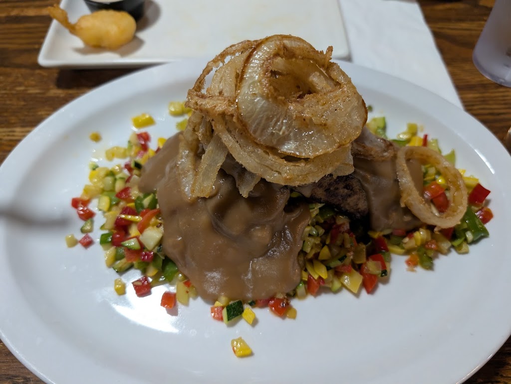 Crazy black flies everywhere were distracting and made it difficult to eat. Otherwise, amazing atmosphere. Good service but slow beverage refills due to overworked server, so be sure to keep an ice water available. Burger was cooked perfectly to order but wife was not fond of the brisket skillet she ordered. Curds were well-portioned but arrived with a single serving/ extremely small cup of sauce. Prices were on the high side for lunch but would be tempted to return for a special occasion or a unique experience with visitors.