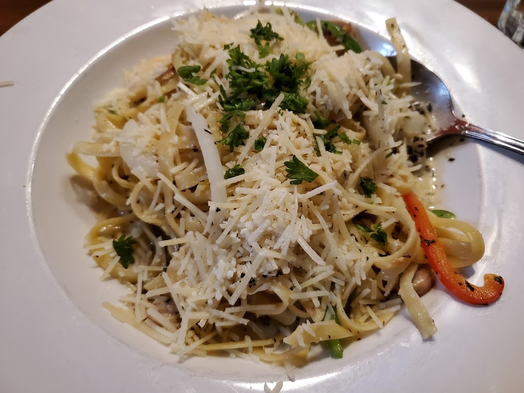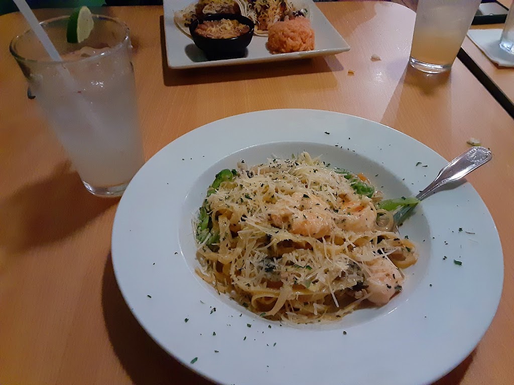 Delicious food and very friendly server. Had the shrimp basil fettuccine and the jalapeño margarita and would recommend both.