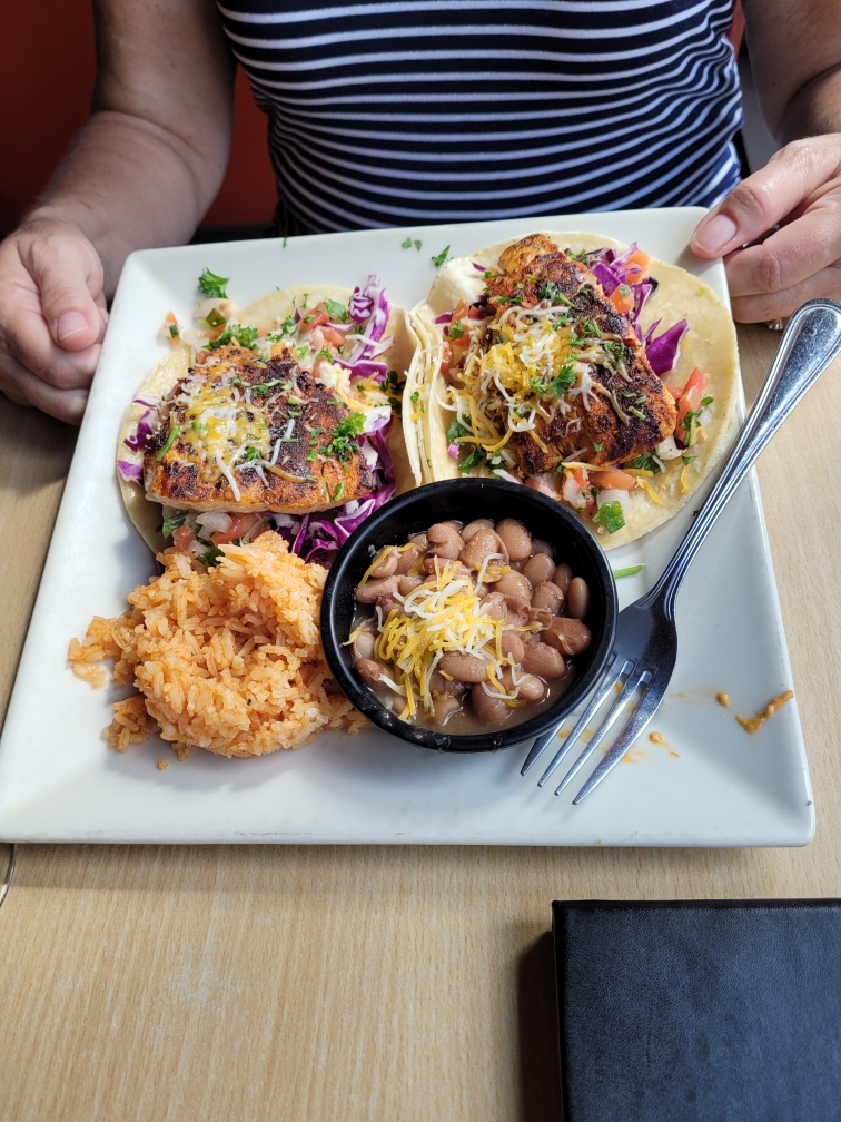 Wonderful red snapper tacos and homemade flan. My husband's seafood nachos outstanding as well. We spend 6 months a year on Gulf coast so hesitate to order seafood up north, but it was perfectly prepared and delicious.