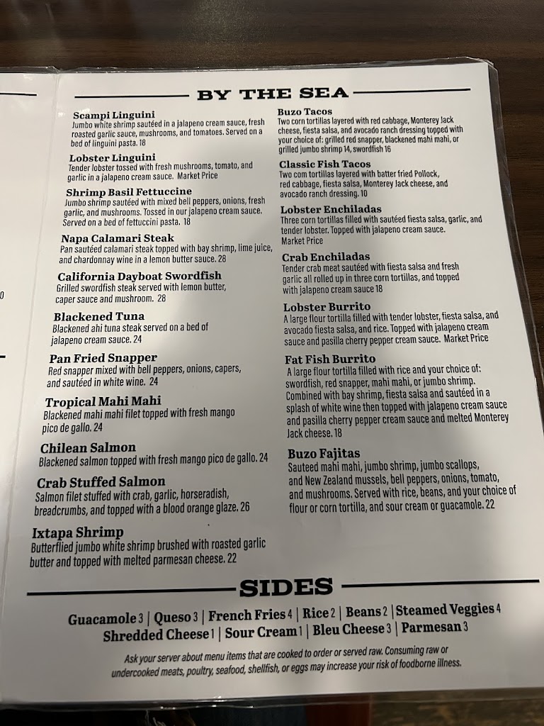 So good! A great variety of seafood options. I got the swordfish burrito and it was excellent. Nice sized portions too! Service was also really good, fast and friendly! Highly recommend!