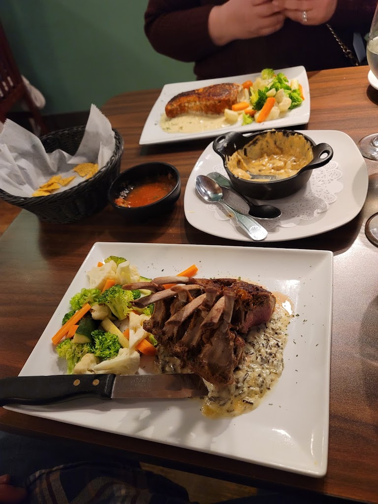 Had dinner here with friend. Service was excellent, prices werefair. New York strip was not the greatest cut but was cooked as requested. Would come back here.