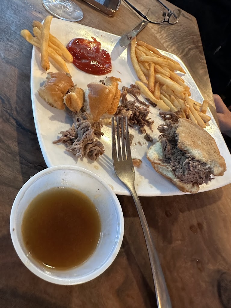 I had the Burnt Ends Brisket with BBQ sauce and fries. It was on the appetizer menu and it was so delicious and tender. The portion was the perfect size.