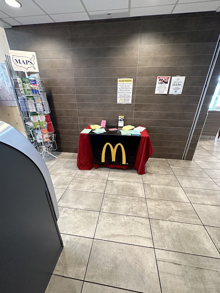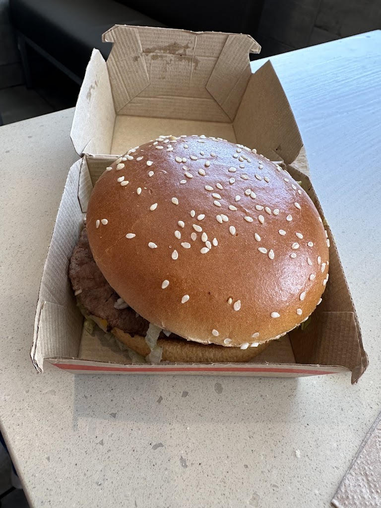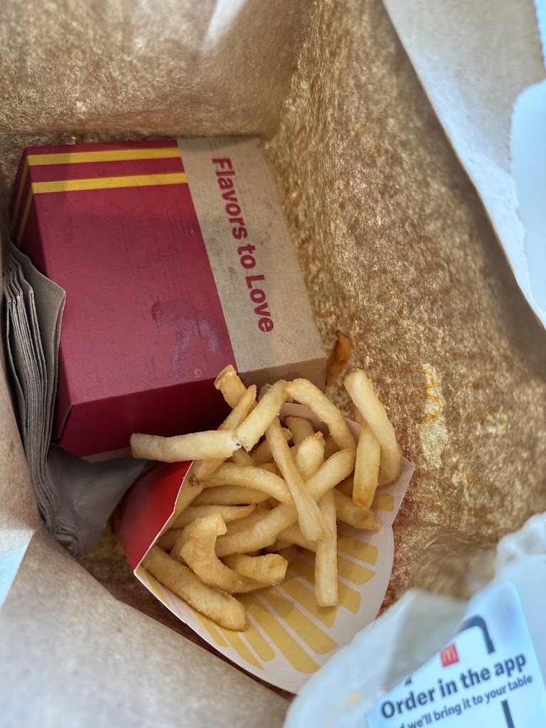 My dad and I stopped here to grab a quick lunch. Nothing special, just drinks and double cheeseburgers and fries. I’m not a huge fan of McD’s, but it was close and we were hungry. The person who handed us our food from the drive-through window almost just threw the bag of food and shut the window before my dad could ask if we could get some ketchup packets. He started asking the minute the window opened, and was completely ignored as it pretty much slammed shut in his face. We waited about 20 seconds to see if anyone would come back- nope. So that’s the first thing, and why service is rated the way I rated it. On top of that, my dad ordered a sprite. We’re already back on the freeway when he takes a sip, only to find out that it’s not sprite- just the carbonated water the flavoring mixes with in fountain machines. He tells me it tastes bad, so I take a sip and yuck! We’re already Miles away at this point, under time constraints to get back north. Who’s going to turn around just to get the correct drink anyway? Seems to me there has to be some way these workers know when the flavoring runs out on a beverage.