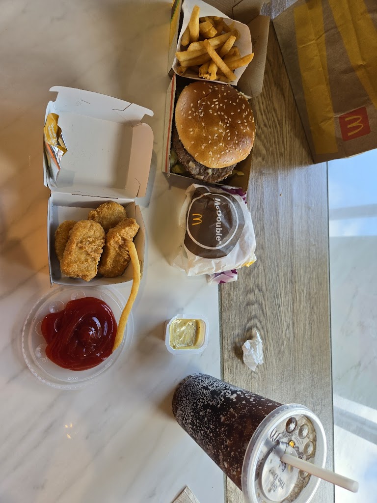 It's Mc Donald's. Quick service. Hamburger not top notch. In a hurry here's the place.