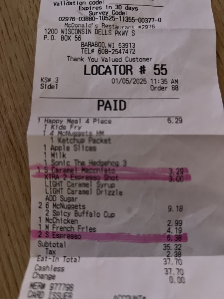 The food is waaaaaaayyyyy too expensive! I can go to any other McDonald's and get the same food for cheaper. Just because it's in Wisconsin Dells, doesn't mean it should cost more.