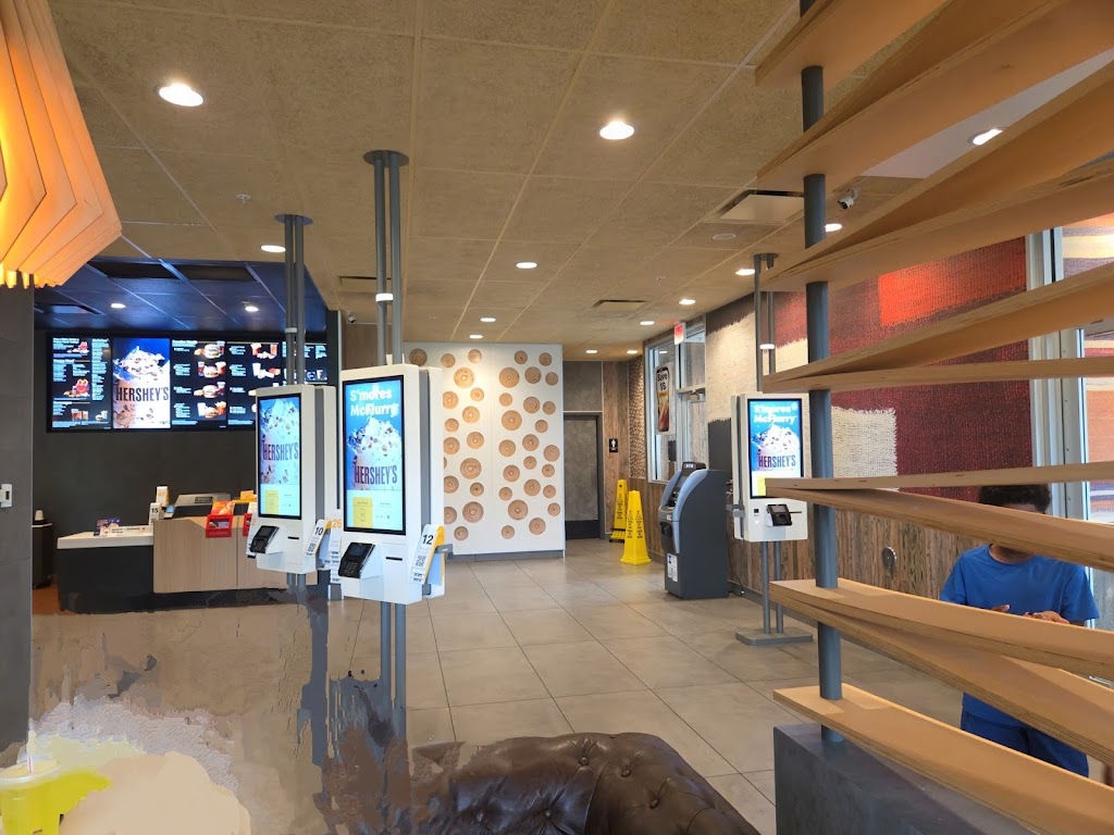 This location is clean and very clean restrooms. There was no wait, with self service kiosks.