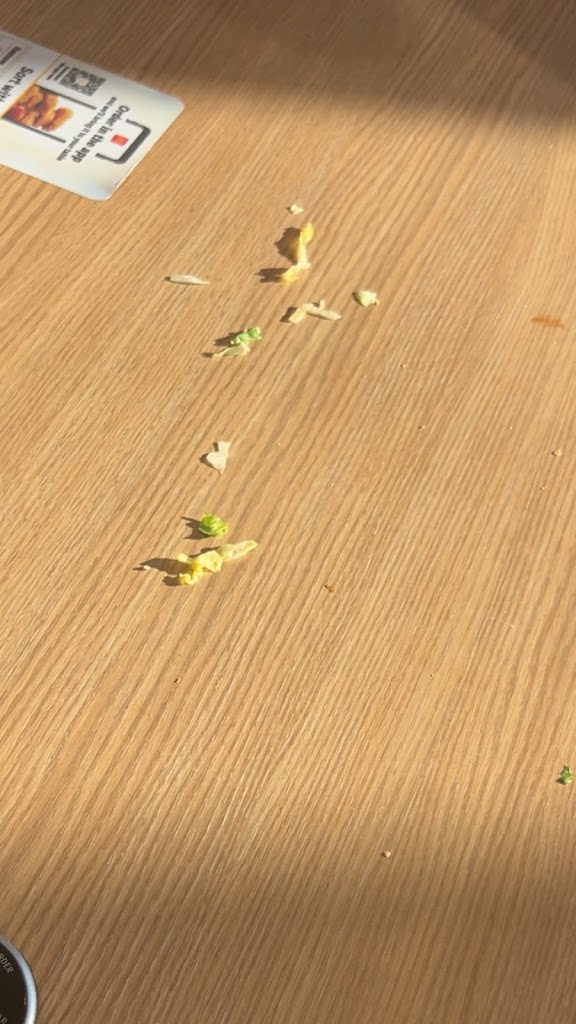 I’ve only gone in to eat twice and some of the tables are clean, I appreciate the worker bringing the food to the table! It’s nice and quiet but I rather do drive thru, sauces will be forgotten occasionally but the food is always fresh and the fries are always salty to my liking so I don’t even mind going back around or inside for them