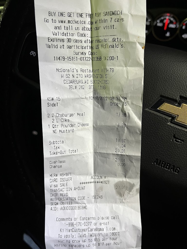 I went there this Saturday night and the guy working there was amazing. I had a bad experience at the mequon McDonald’s but then I went to this one and I came to fast and fresh hot food with great customer service.