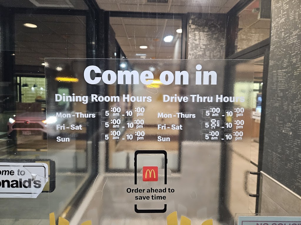 It's McDonald's. They have shortened their hours because they don't have enough employees.