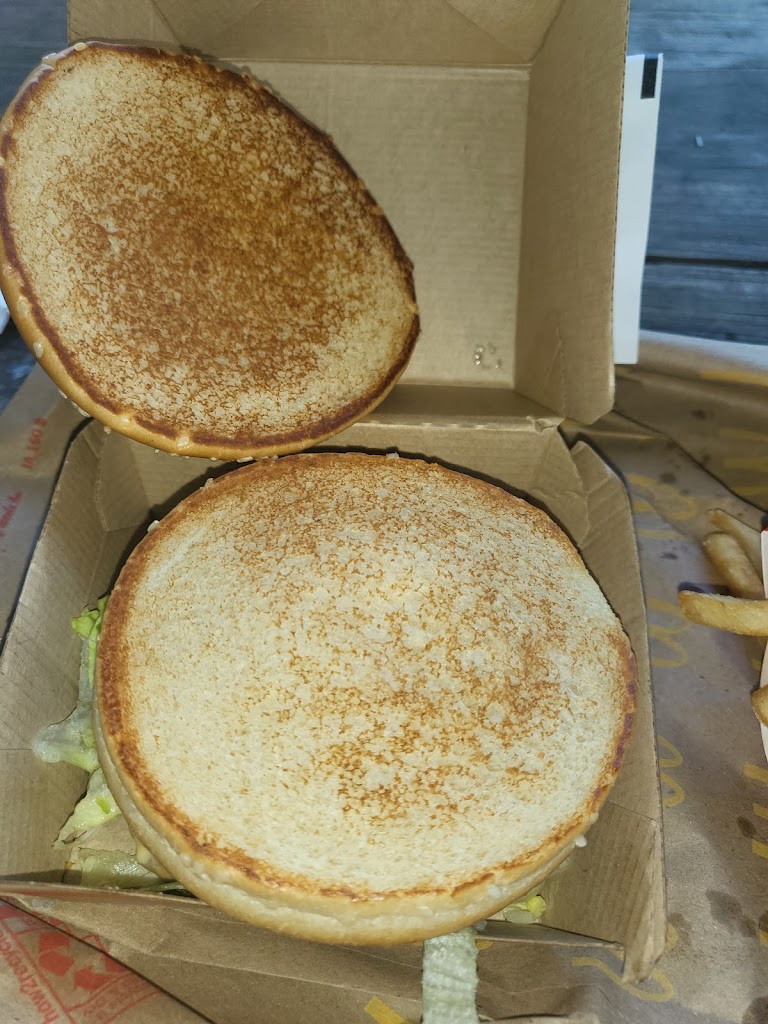Make sure when they hand you your food to open every individual item to make sure the patty is present. I’ve never seen this before in my life lol. Supposed to be a Big Mac