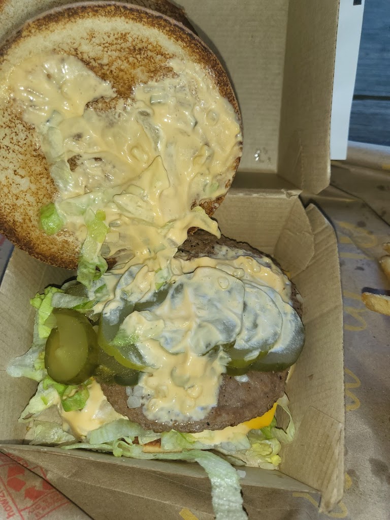 This is how I received my big Mac. It seems every single time we go there the service is either awful or the food is made like this.