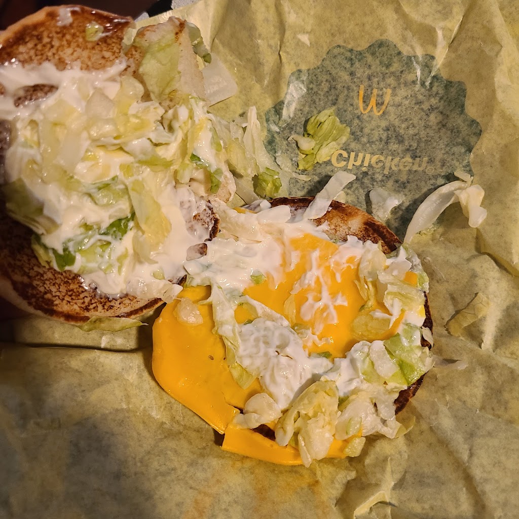 No McChicken on my sandwich. Just the extra cheese I ordered. How can you forget chicken on a chicken sandwich? Everything else was ok.