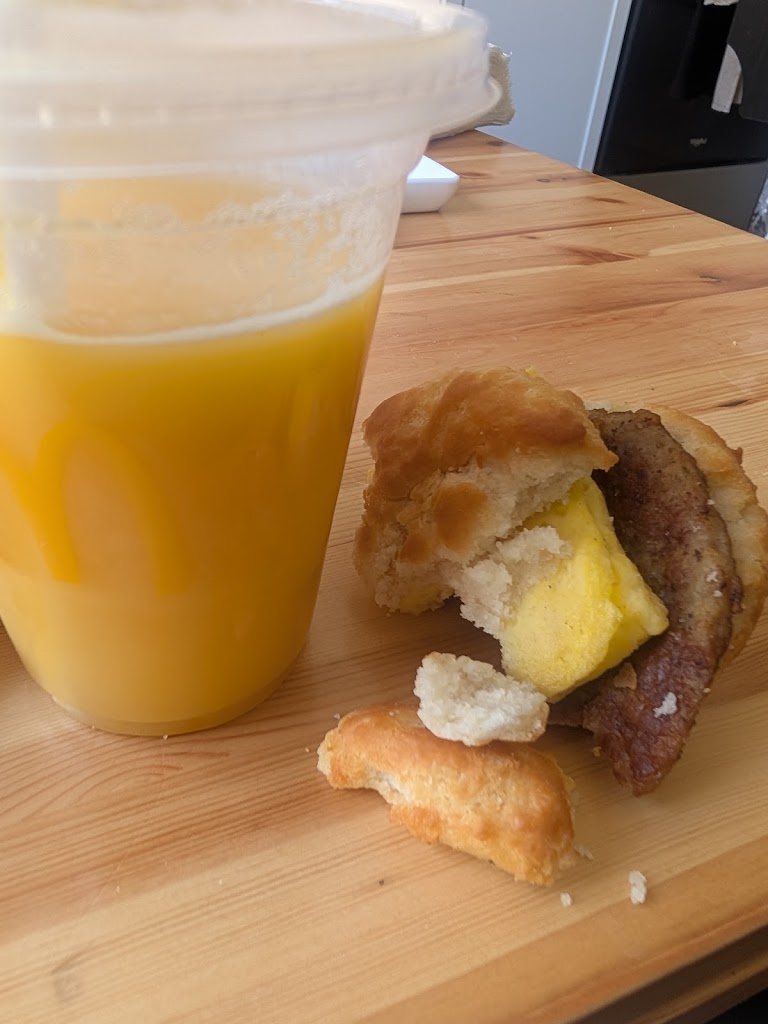 Two breakfast sandwiches served on a NOT fresh biscuit that was actually hard. Not crispy...hard. the orange juice was sour and not friendly service either . This is only the second time I have purchased anything from this location and both times it was horrendous. I've had no problems with other locations but this one on military I would not recommend.