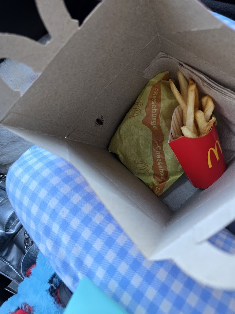 Went to the drive through after traveling through southern wisconsin. Stopped here and got my daughter a happy meal. As soon as she opened it and moved the apples a stink bug popped up and scared her. I immediately closed it and took it back inside. The lady that came up to the counter was helpful, threw away the old happy meal, and remade it. When describing what happened to the drive thru person, the drive thru person said, "She's probably just trying to get a free happy meal" not realizing I could clearly hear her. She did come up to apologize, however I made sure to point out that the happy meal in the trash was completely untouched, and I did NOT just want a free happy meal, just one free of bugs.