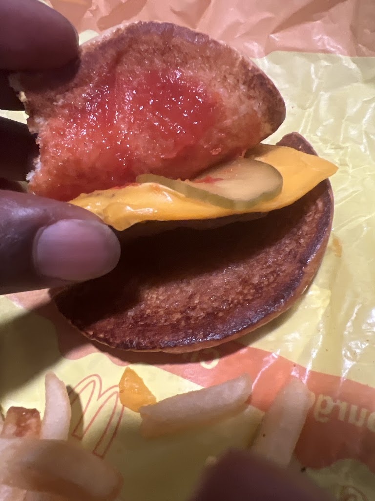 My biscuit was burnt. The person that collected my money didn't say anything... It is just McDonald's I guess. I shouldn't have high expectations.