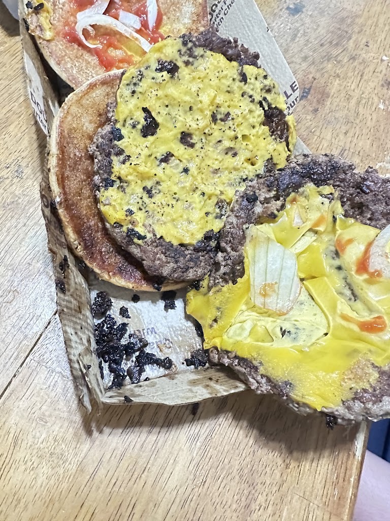 Why did you show up for work? Two cheeseburgers plain, medium fry, and a drink. The fries had ZERO salt on them. Both cheeseburgers looked plain yet had pickle juice and the ever so slight taste of mustard. I mean, HOW did you do that and why? Also... Over 8 minutes AT THE WINDOW for two smooshed, dry, incorrectly made items. Oh wait, three incorrectly made items since the fries had no salt. Why do the fries taste like mustard? Did you have a mustard explosion?! Threw it in the trash when I got home. I want my $8.50 back! Also, no receipt. Grill slip says 1493 02:31