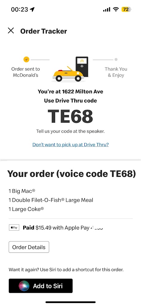 It's showing you still open while your paving your parking lot, no way in. I placed an online order this morning and somehow my order was picked up??? By who??? because no one can get into the parking lot and no one has answered the phone since 8am this morning. If I don't receive my money back I will be calling my bank to dispute the charges and report this McDonald's for theft. I saw an employee leave the building with food when I drove by at noon so I know there are people working.