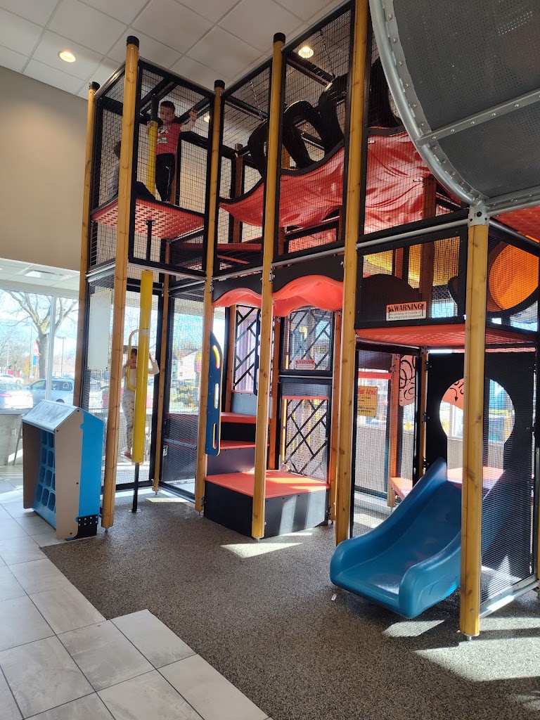 There was basically no cup tops, the countertop by drink station wS disgusting. Play place garages where so over full that there was garbage being placed ONTOP of the garbage and on the floor. Bathroom was so gross, pee everywhere-literally held my daughter over the toilet when she was using the restroom. I would seriously give this place zero stars. The person taking our order didn't say a word really. Then when giving us our food I said we're eating here we can't get a tray. They said no at first then I said this and finally got one after pointing it out. All around was horrible. Why work at mcdonalds if you're not going to do your job. Especially a play place one where kids are running around? Keeping it clean is not hard..