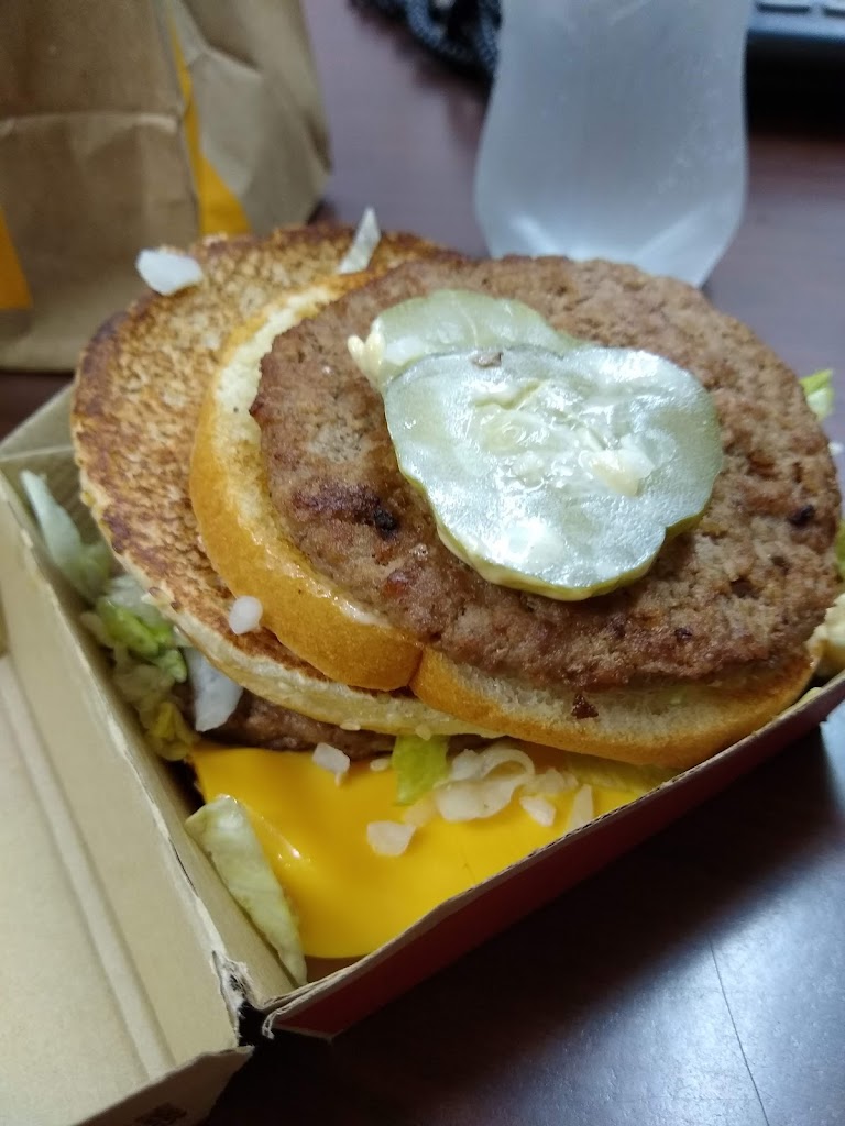 The food was alright. It was put together really sloppy both times and looks like no one even tried. I get there are mistakes in food but I asked to have my stuff re made because I asked for three burgers PLAIN, yet I got ketchup and mustard on the first three and then on my second try only one was plain and the other two had mustard and pickles. Again, not that big of a deal I understand because I myself work fast food. But the mistake should be fixed after the first time. Not that hard to make a plain cheese burger with nothing on it
