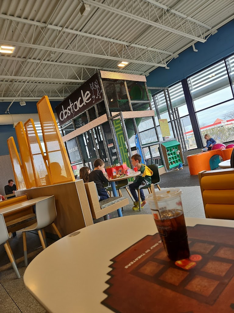 Tables by kids area never get cleaned. Asked for our table to get cleaned never got cleaned gross….my quarter pounder was pink on the inside….lots of kids with one adult running her head off feel bad for her….drive through is best option.