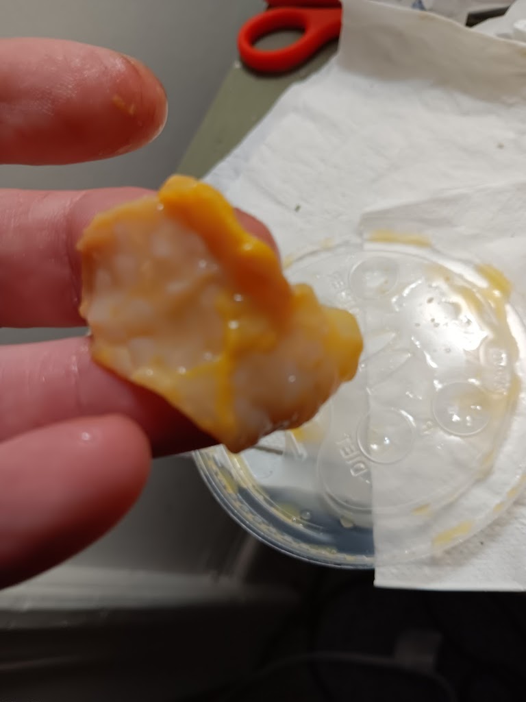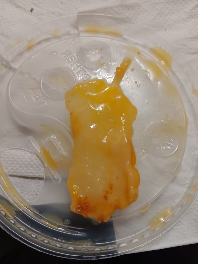 This was in my orange juice and when I called the manager immediately got an attitude with me and even hung up on me! Now that's just awesome customer service! Not to mention the fact something that looks like raw uncooked bacon was in my drink! Unreal seriously