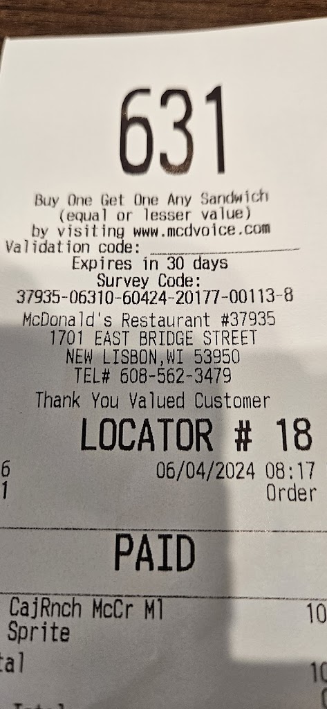 08/26/24.Ask for your food to be made to order. It won't matter you will be lied to.Would prefer anything but MCD'S, burger king, arby's, subway, hardees, Casey's! 3 out of 5 times that I stop here my order is wrong. I now pull into a parking spot before leaving and check my order.