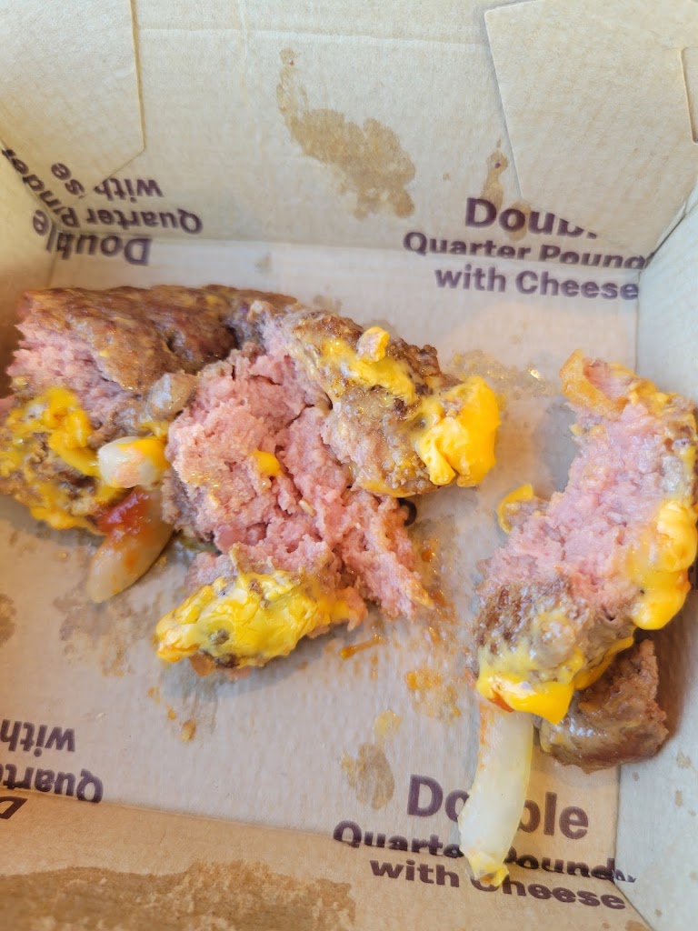 Typical chicken Deluxe sandwich that was warm when delivered. Cheese burger was also warm. Service was good for McDonald's.