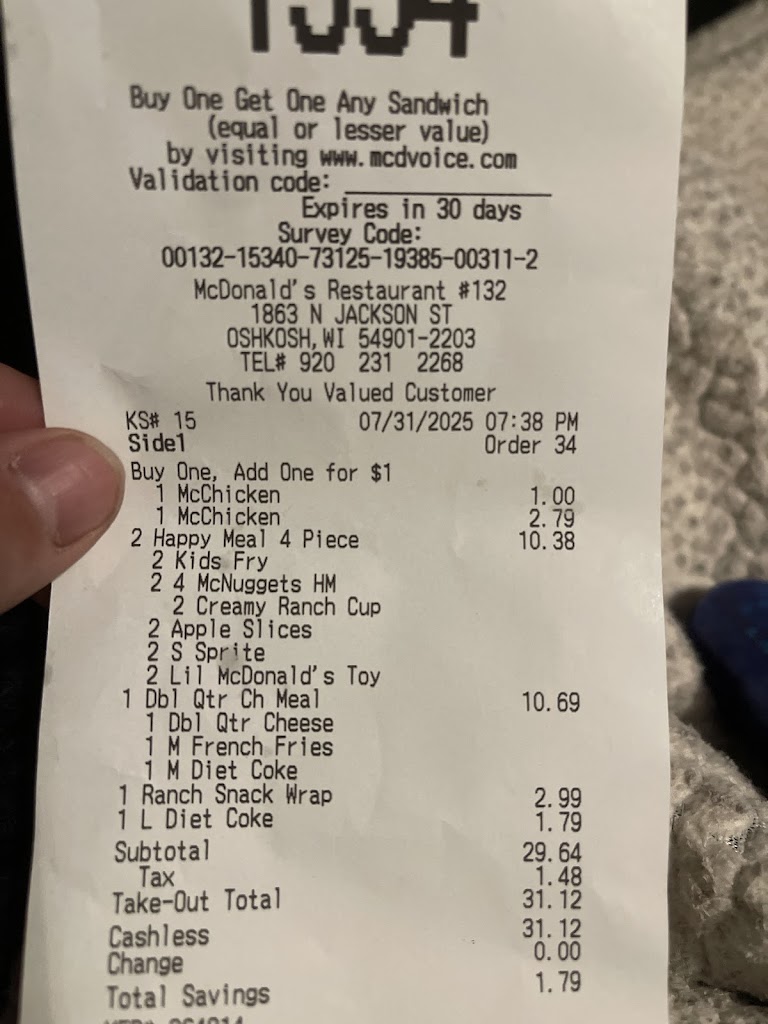 So what, McDonald’s doesn’t give out receipts anymore? No one wanted to help and after my baby was crying, I drove off.